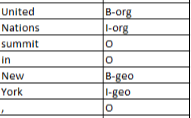 Named Entity의 시작을 알리는 단어에는 B가 태깅되고, 중간에는 I, Entity를 포함하지 않는 곳에는 O가 태깅된다. 그리고 B에 Named Entity 정보가 함께 들어가 있다.