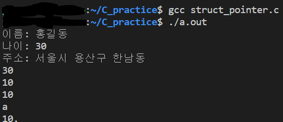 printf("%d\n",(*p1).age); //역참조 & dot notation으로 멤버접근