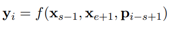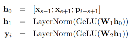 우선, 타겟 토큰의 positinoal embedding(pi)과 boundary token의 인코딩(xs−1,xe+1)을 이용하여 output vector인