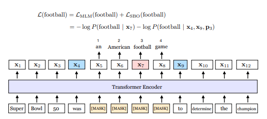 2. Span Boundary Objective(SBO) - span의 boundary token들을 이용하여 전체 masked span을 예측한다.