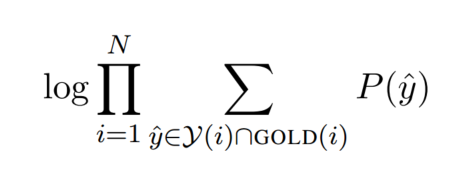 학습방법은 이러하다. gold clustering 안에 있는 모든 정확한 선행사들의 marginal log likelihood를 maximize하며 optimizing한다.